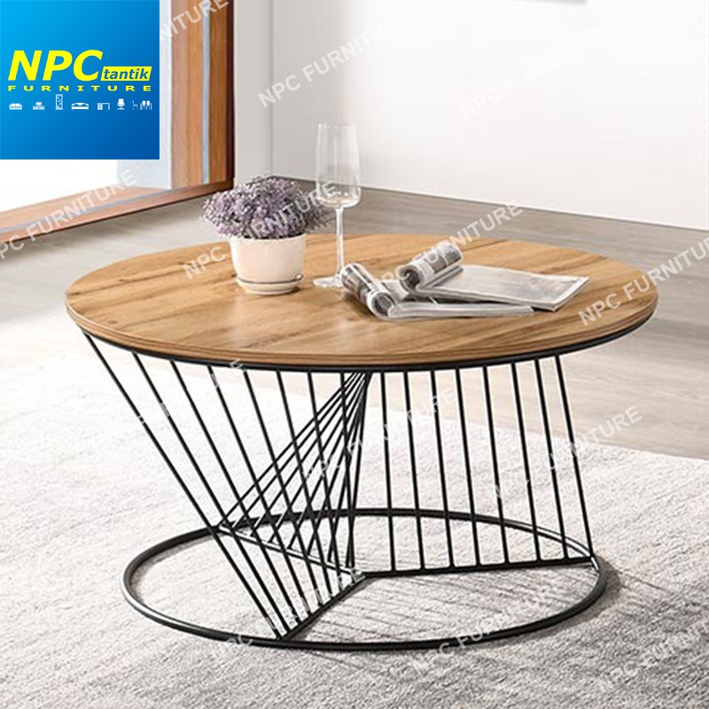 Npc Modern Design Round Coffee Table With Metal Leg Industrial Style Wooden Metal Ready To Use Ct 2281 Shopee Malaysia
